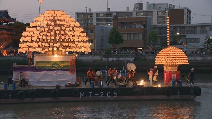 無病息災を願う「堀川まつり」が1日、名古屋市熱田区の宮の渡し公園で開かれました。 まつりでは、約360個のちょうちんに明かりを灯した「まきわら船」の曳き回しが行われ、水面に映ったちょうちんの明かりで幻…