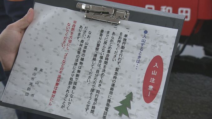 高山市高根町では、過去に山菜狩りなどで山に入り行方不明になる人が多発したことを受けて、22年前から毎年この時期に啓発活動が行われています。