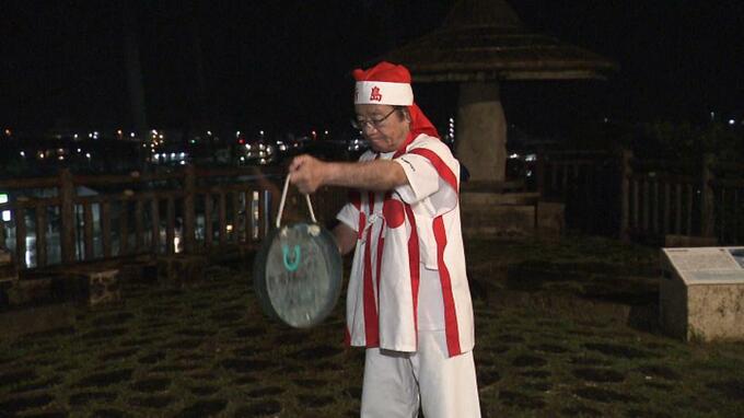 伝統行事の糸満ハーレーを1週間後に控え、糸満市の拝所(はいしょ)、山巓毛(サンティンモー)では、「ハーレー鉦」が厳かに鳴り響きました。