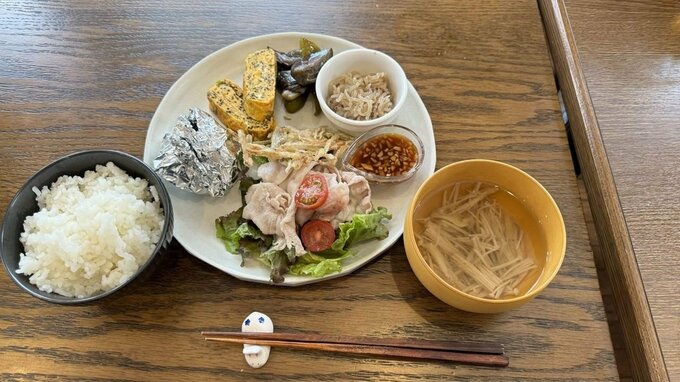 取材した日、大人には新生姜の豚しゃぶや、ナスとピーマンの揚げ浸しなど彩り豊かで栄養満点な食事が振る舞われました。食事中は助産師さんが子どもを見守ってくれるので、お母さんたちは食事とおしゃべりに集中できて、自然と表情が柔らかくなっていくのが印象的でした。