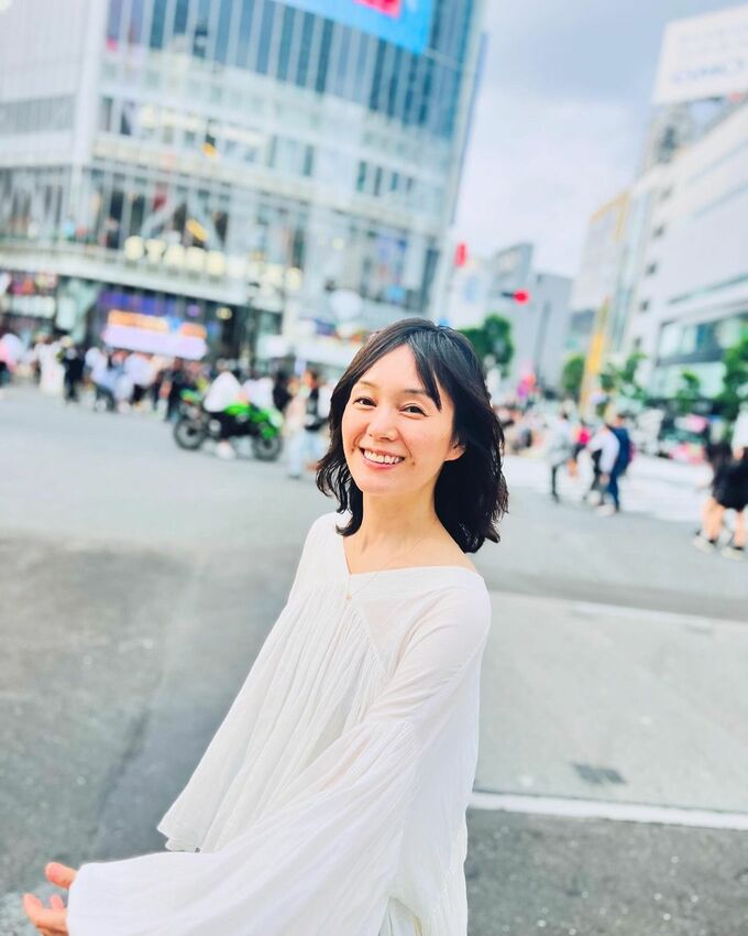 奥貫さんは「写真は久しぶりに二人で出かけた休日、あの頃とはまったくちがう、もはやどこの国だかわからないスクランブルで『お母さん、こっち向いてー!』と息子が撮ってくれたもの。」と思い出の地で、息子が撮影してくれたという写真をアップ。