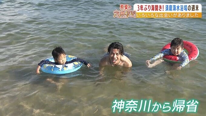 「家族と」「声をかけて知り合った人と」海を楽しむ人たち