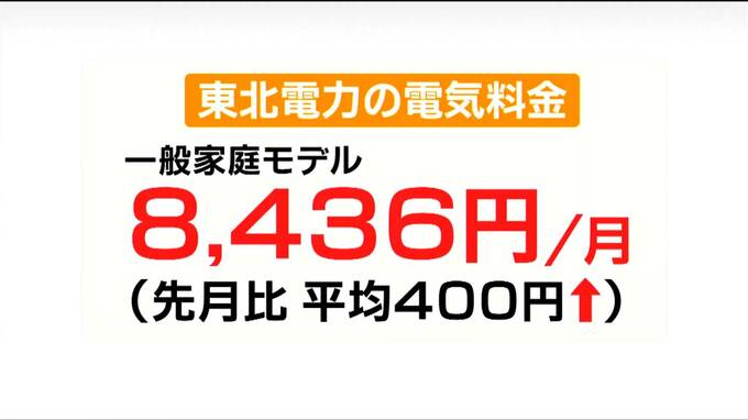 また、電気料金も6月から値上がりします。東北電力によりますと、国からの補助金が引き下げられるため、一般家庭のモデルで平均400円値上がりし、月8436円となります。