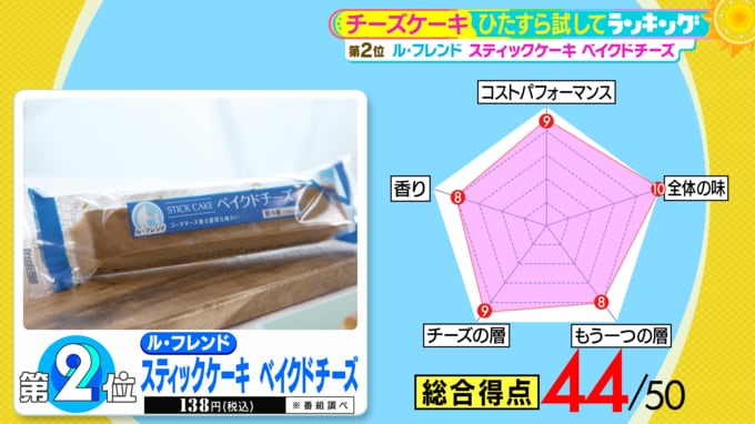 第2位は、ル・フレンドの『スティックケーキ ベイクドチーズ』(税込138円 ※番組調べ)。