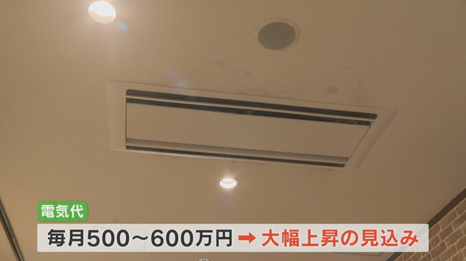 この他、食堂の冷蔵庫や館内の照明、空調にも電気を使用しているため、月に500万円から600万円の電気代が大幅に上昇する見込みです。