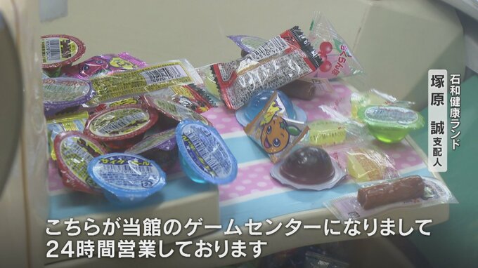 「こちらが当館のゲームセンターになりまして24時間営業しております。お客さんがいてもいらっしゃらなくても電気代がかかる」