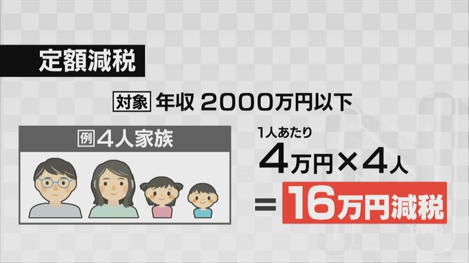 6月から岸田政権肝いりの「定額減税」がスタートしています。「定額減税」は、1人あたり所得税3万円、住民税1万円のあわせて4万円を差し引くものです。対象は年収2000万円以下の人で、扶養家族の分も減税されるため、例えば夫婦2人と子ども2人の4人家族の場合は、家族で4人分で16万円の減税となります。
