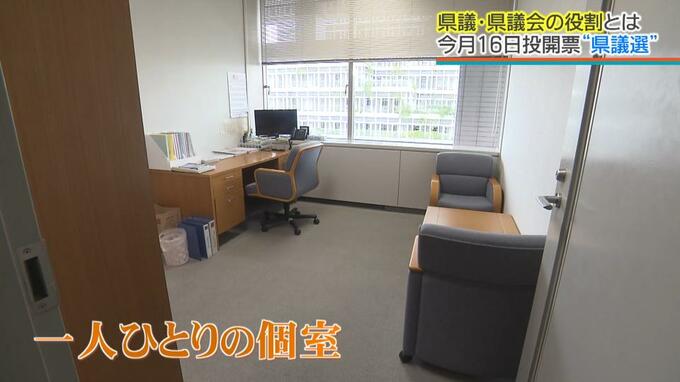 沖縄県議会では、こうした議員報酬とは別に、実は全国でも珍しい処遇があります。それは県議1人ひとりに与えられた個室。「議員居室」です。