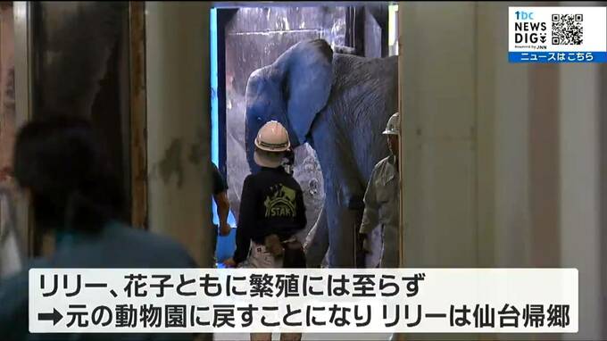 6年前、仙台市の八木山動物公園から繁殖のために秋田市の動物園に引っ越したメスのアフリカゾウ「リリー」が帰ってきました。