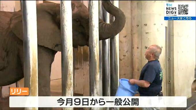 落ち着いた様子で飼育員の号令に応え、ゆっくりと自分の部屋へ向かっていきました。リリーは6月9日から一般公開されます。