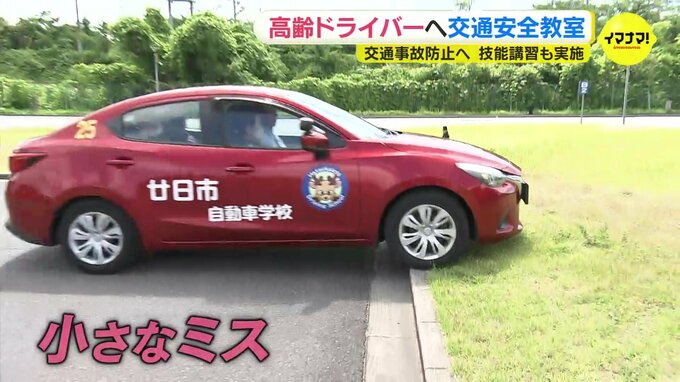 高齢ドライバーによる事故で、目立つのはアクセルとブレーキの踏み間違え…。講習ではあえて段差に乗り上げてブレーキで危険を回避する訓練も行われました。