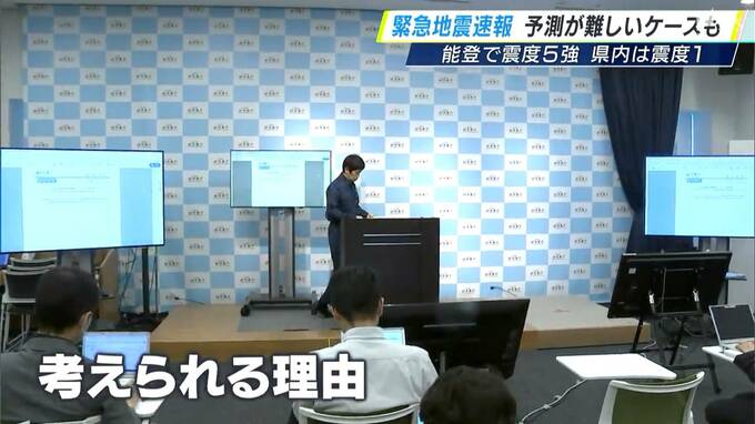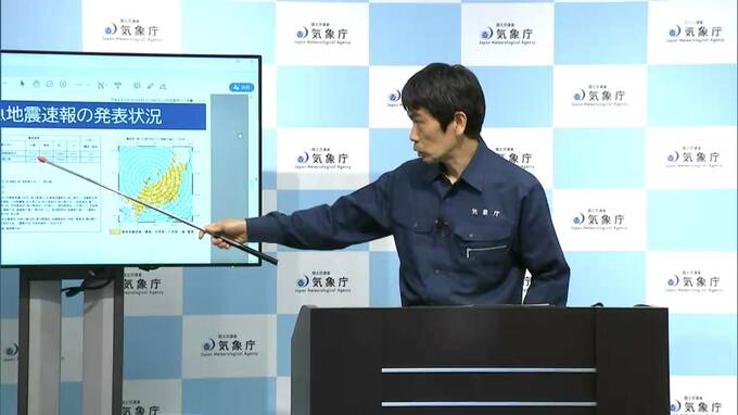 「極めて短時間に、同じ場所で地震が複数発生したらしいということが分かっておりまして、緊急地震速報のマグニチュードが大きめに出てしまった」