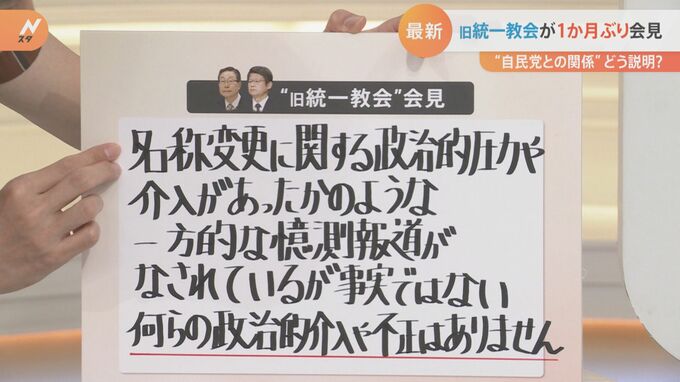 旧統一教会の田中富広会長が1か月ぶりに会見を行いました。