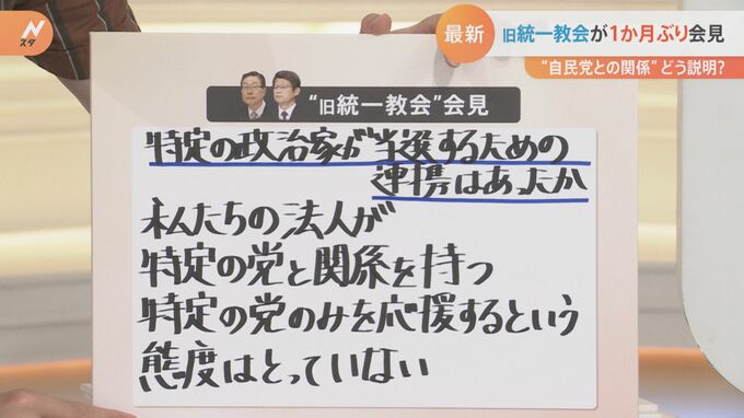 釈明会見というか、「自分たちはそうやってません」という宣言をしているだけだなというふうに見てました。そもそも団体としての問題と、政治との関わりと、大きく二つあると思っています。政治との関係の部分に関しては、政治家側もしっかり出していかないといけないですし、まだ情報が出揃ってないので、どちらの意見も鵜呑みにできないというか、結局会見してもわからなかったなというところです。例えば、献金問題が実態としてあるのかどうか、具体的に触れられていなかったような印象がありました。裁判の件数は減っているけれども、その問題としてはどれくらいあるのかというところまでは言及されておらず、団体としての(献金)問題に対しての考え方は、もう少しお話いただきたかったなというふうに思いました。