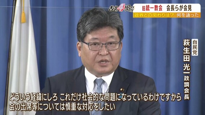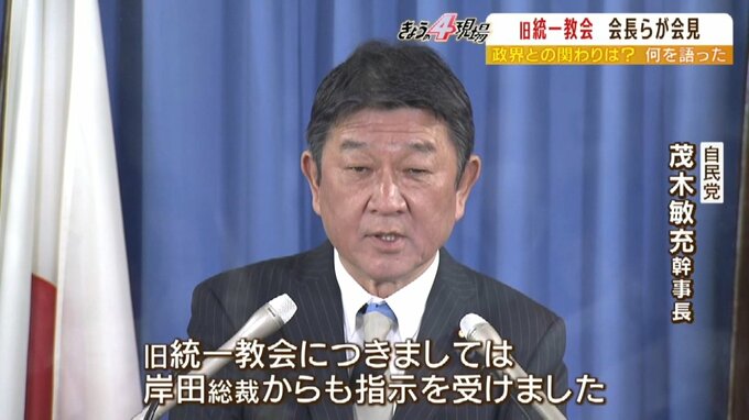「旧統一教会につきましては岸田総裁からも指示を受けました。自民党所属の国会議員全員に対して、国民に疑念を持たれることのないように、政治家としての責任において関係をそれぞれ点検し、適正に見直すことを要請したところであります」