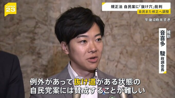 自民党の法案への批判は、合意したはずの日本維新の会からも上がりました。