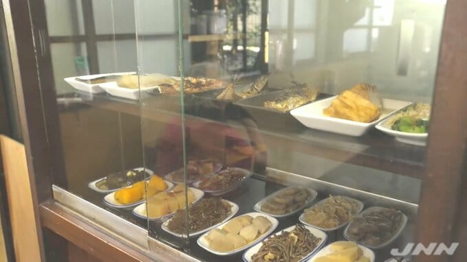 ガラスケースから客が総菜を取り出して食事するスタイルは、創業当時のままです。