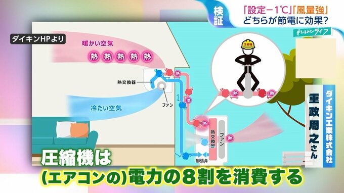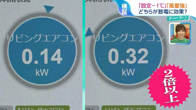 エアコンの設定温度を1℃下げ、15分間つけてみると…