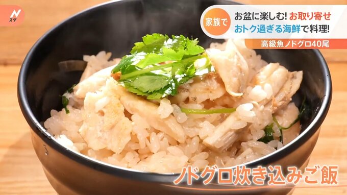 「ご飯一粒一粒にしっかりとノドグロの甘みや旨味が染みわたっていて、一口、口に入れるたびにノドグロの美味しさがフワーって広がるんですよ。贅沢な炊き込みご飯ですね」