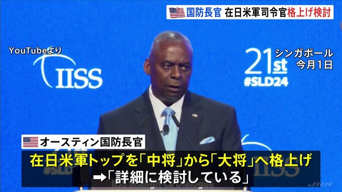 安全保障情勢が緊迫化するなか、さらなる日米連携強化の動きです。アメリカのオースティン国防長官は、在日アメリカ軍トップの階級を現在の「中将」から「大将」に格上げする案を「詳細に検討している」と話しまし…