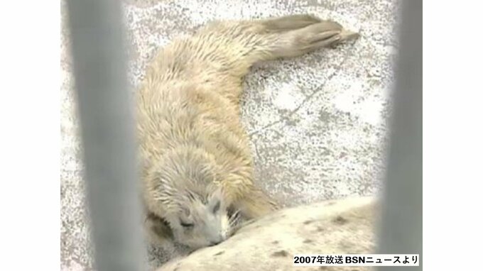 現在、マリンピア日本海で飼育されているゴマフアザラシは『ホゴ』娘のピュア(メス)のほか、孫やひ孫など合わせて7頭です。