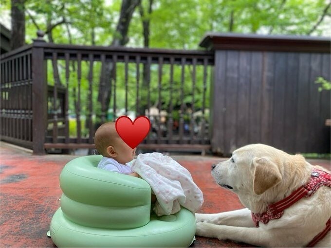 去年の11月に誕生した愛娘と愛犬の写真を公開しました。