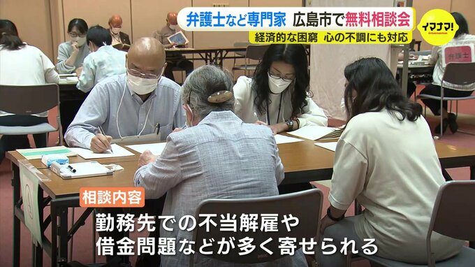経済的な困窮など暮らしの相談に弁護士などの専門家が無料で応じる相談会が、広島市でありました。この相談会は、広島弁護士会が主催したものです。心の不調などさまざまな悩みにも対応できるよう、公認心理師や医…