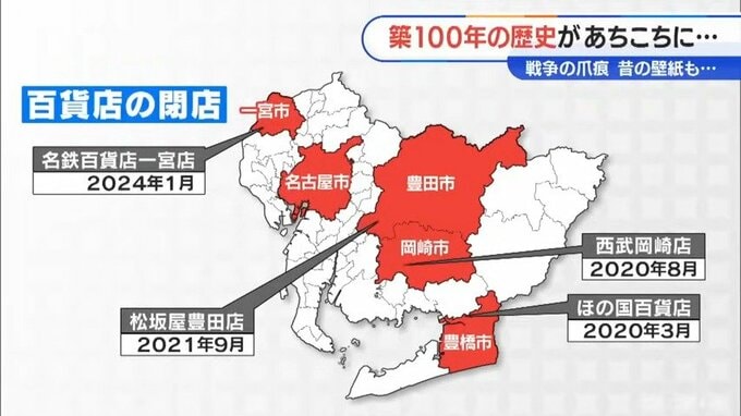 愛知県内ではこの4年で4つの百貨店が閉店し、県内にある百貨店は名古屋市内のみ。岐阜髙島屋もこの夏で閉店し、岐阜県は全国で4つ目の「百貨店ゼロ県」に。