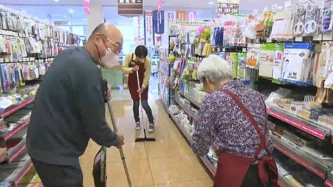 81歳の認知症の女性が、営業中のスーパーマーケットの店内の掃除に取り組んでいます。
