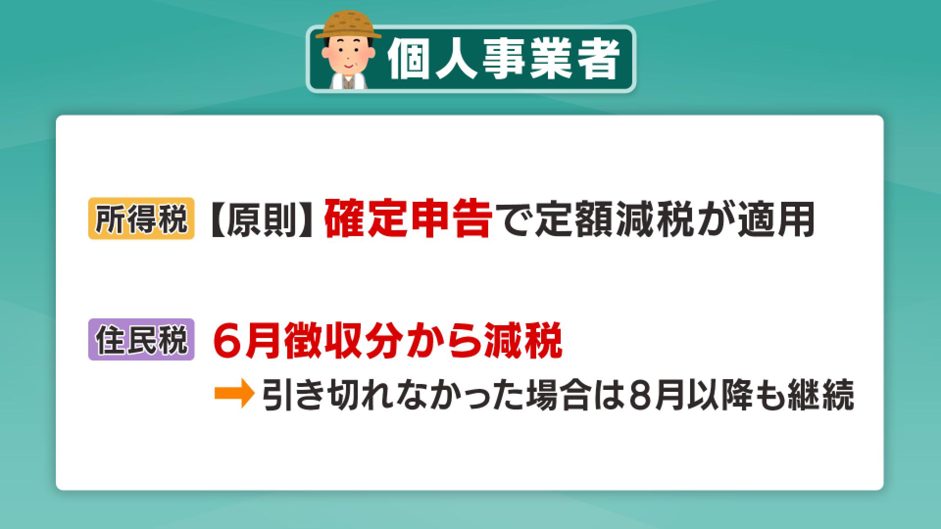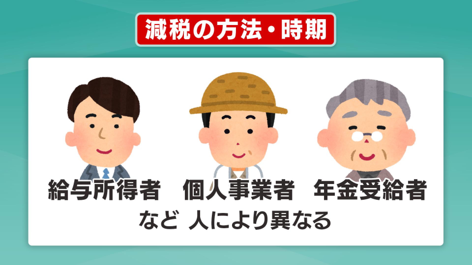 減税額は1人あたり所得税が3万円、住民税が1万円の合わせて4万円となっていて、所得が一定の額を超える人は対象外となっています。