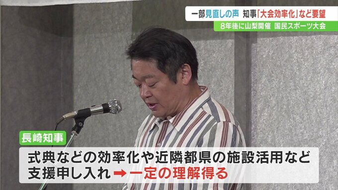 山梨県では8年後に開催されますが、長崎知事は日本スポーツ協会に大会の効率化などを要望し、理解を得たことを明らかにしました。