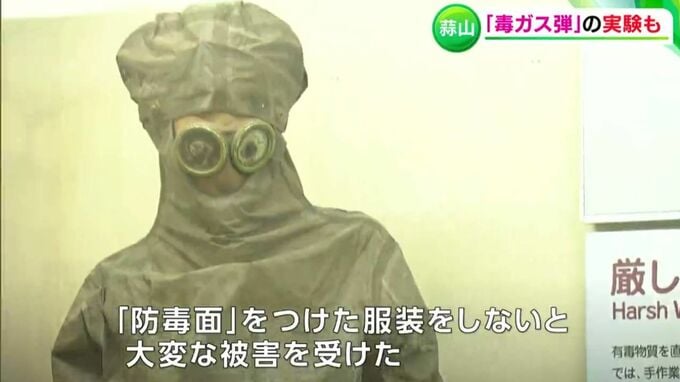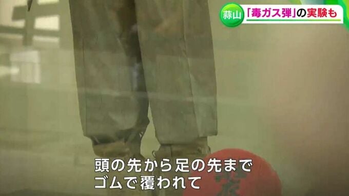 「蒜山で、実際に『毒ガスを使う実験用に使われていた服』だろうと。頭の先から足の先までゴムで覆われて防毒面をつけた服装をしないと大変な被害を受けた」