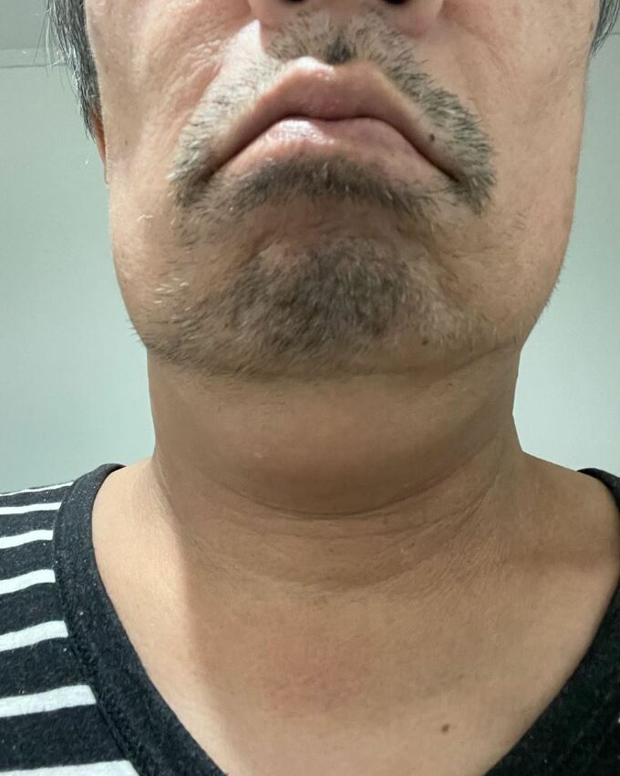 しかし「でもアゴやその下の、照射でヒゲが抜けてしまった所に、新たなヒゲが生えてきたり」と、自身のあご下の写真を掲載。下あごには既にヒゲが生えそろいつつあり、さらにあごの下と放射線治療の影響で膨らんでしまった喉の境目あたりに、少しずつヒゲが生えてきているように見えます。