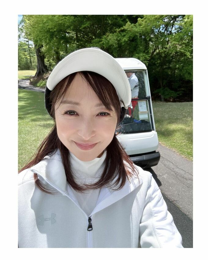 かとうさんは、「軽井沢〜」と呼びかけるように書き出し、白いゴルフウェアのファッションに身を包み、ゴルフカートの前で笑顔で1枚写真をアップ。