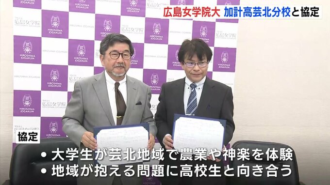 広島女学院大学が5日、広島県立高校と協定を結び、人材の交流やキャリア支援などで連携することになりました。広島女学院大学が協定を結んだのは、県立加計高校芸北分校です。協定は大学・高校双方の人材育成と交…
