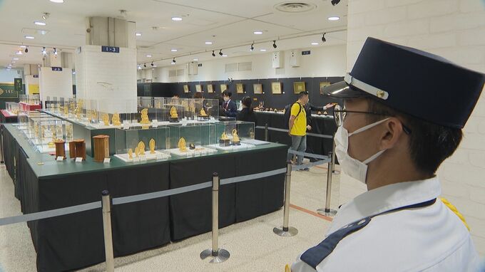 金の値上がりが続く中、6月5日に名古屋で始まった「大黄金展」は、盗難対策も強化されました。