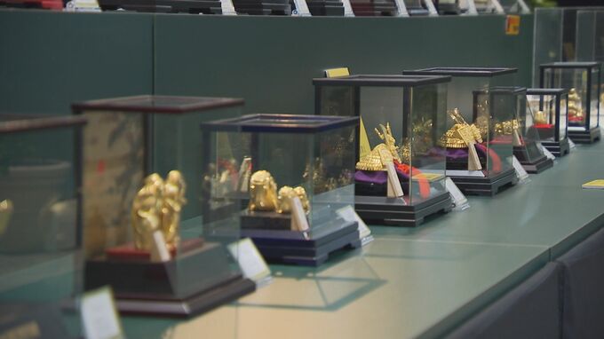 金は値上がりが続いていることもあって、会場に並ぶ1000点以上の金製品は例年にも増して注目を浴びています。
