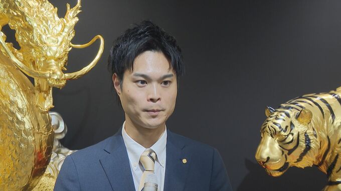 「金価格は、これだけ上がっているが、まだまだ上がる見込み。1000点以上、金製品がそろっているので、目で見て音で聞いて、五感で楽しんでもらいたい」