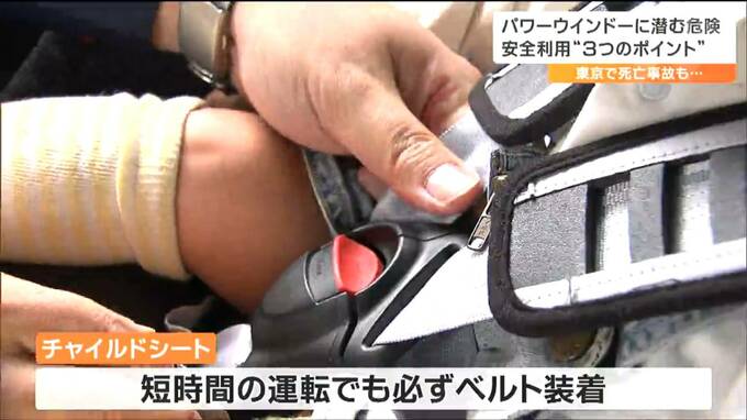 「(チャイルドシートのベルトをしていれば)手を出しても窓には届かず、頭を挟むという心配もなくなります」