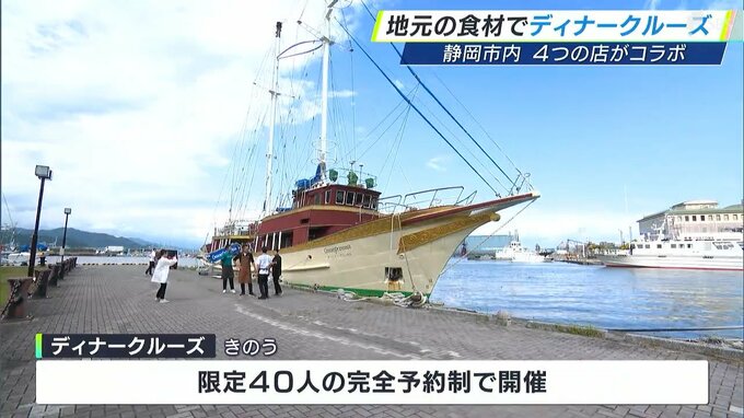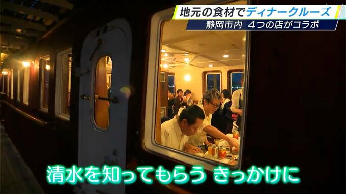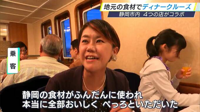地元の食材を楽しんでもらいたいと、静岡市内の4つの飲食店がコラボして、ディナークルーズを企画しました。乗客は、駿河湾を眺めながら食事を楽しみました。