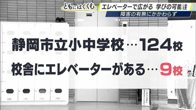 しかし、こうした小中学校は、まだまだ少ないのが現状です。静岡市内には124の小中学校がありますが、校舎にエレベーターがあるのは9校だけです。