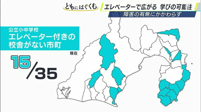 静岡県内35市町のうち、15の市町では、エレベーターのある校舎がありません。