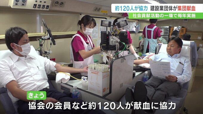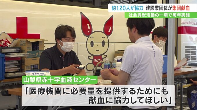 献血協力者が減少する中、建設業の団体が甲府市で集団献血を行い、100人を超える人たちが献血に協力しました。