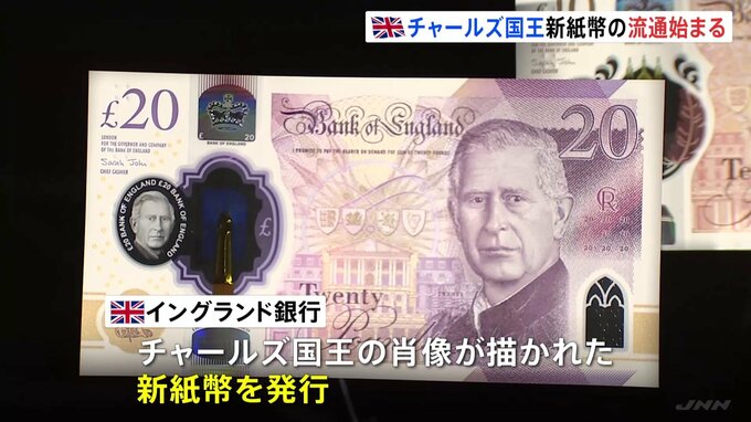 イギリスのチャールズ国王の肖像が描かれた新たな紙幣の流通が始まりました。記者「新紙幣がもらえました。5ポンドと10ポンドと20ポンドです。64年ぶりに紙幣に描かれた君主が交代となりました」イギリスの中央銀…