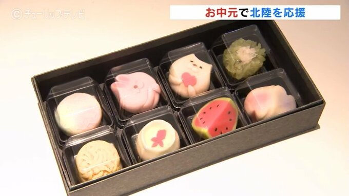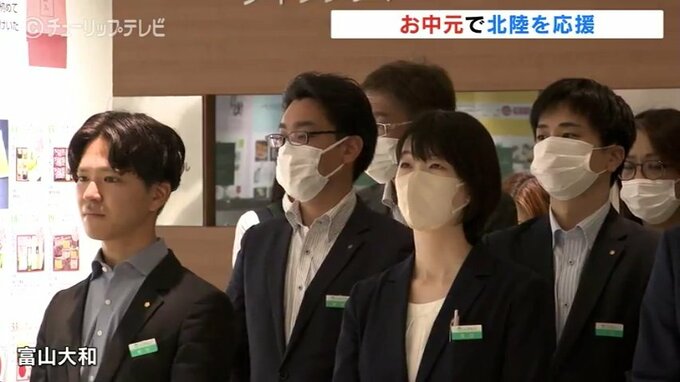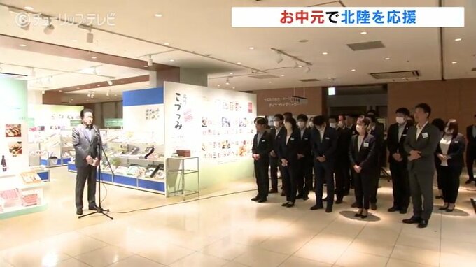 ことしは、元日に発生した能登半島地震などを受けて、北陸3県のギフトに力を入れたいとして、出陣式には、富山からは繊細な職人技の和菓子で知られる「引網香月堂」をはじめ、生産者らが出席して自慢の商品をPRしました。