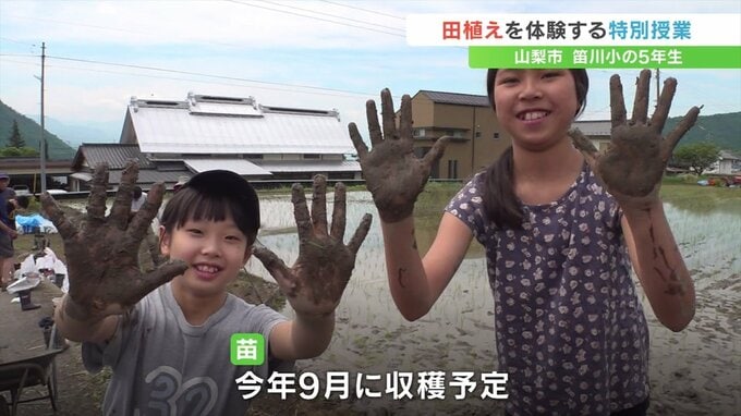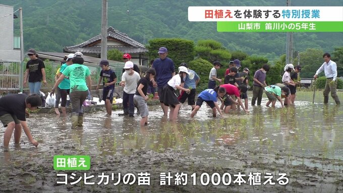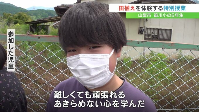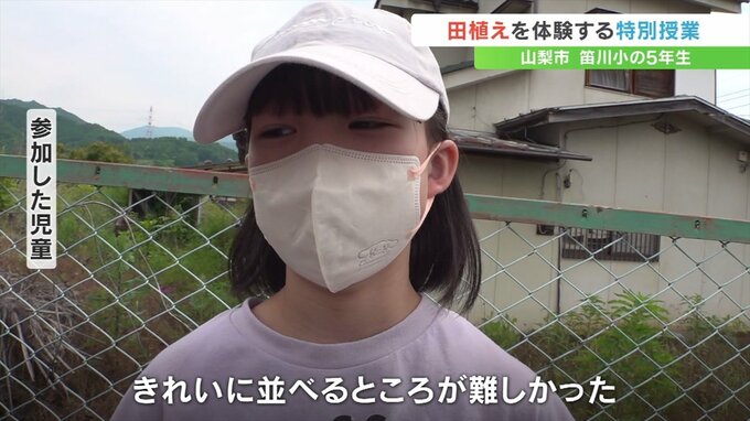 子どもたちが田植えを体験する特別授業が山梨県山梨市で行われました。