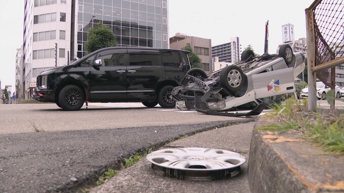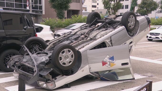 警察によりますと6月6日午後2時50分ごろ、中区丸の内の「伏見魚ノ棚」の交差点で、タクシーがガードレールにぶつかり、そのはずみで横転。