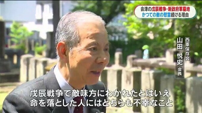 (西軍保存会 山田悦史会長)「明治生まれの人たちが存命のうちは親から直接、戊辰戦争の悲惨さを聞いていたので、薩長土肥に対する確執というのは持っていたと思うんですけど、若い年ではるか陸奥まで来て戦って戦死されているわけですから」