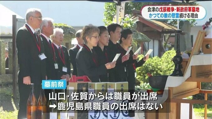 かつて敵として戦った相手の慰霊を続ける会津の人たち。しかし、こうした活動は鹿児島ではほとんど知られていません。墓前祭には、山口や佐賀からは県東京事務所の職員が毎年のように出席していますが、鹿児島県職員の出席はないと言います。
