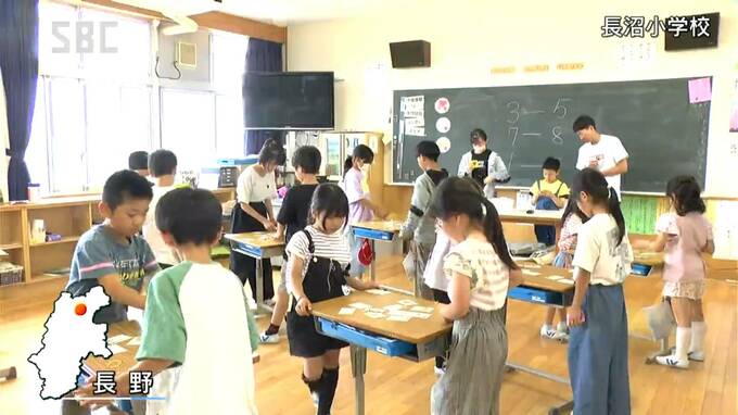 長野市の小学校で7日、地域の魅力を表現したかるたを使って地元について学ぶ授業が行われました。